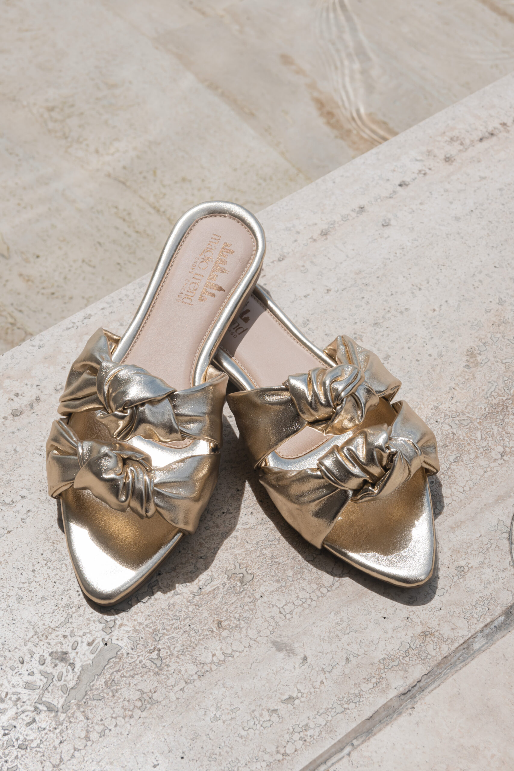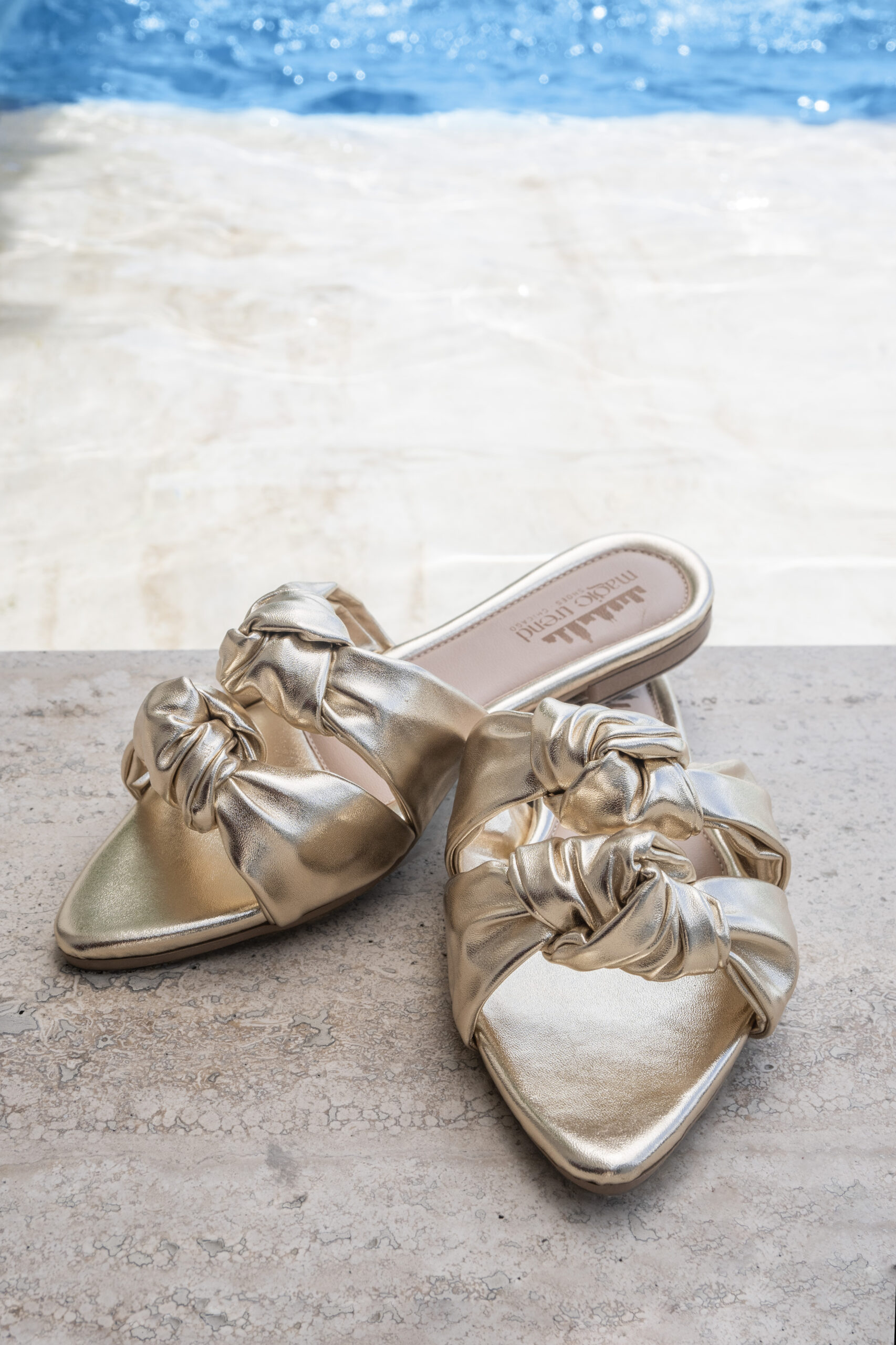 Pointed flat sandal made of synthetic material, handcrafted by Colombian artisans.